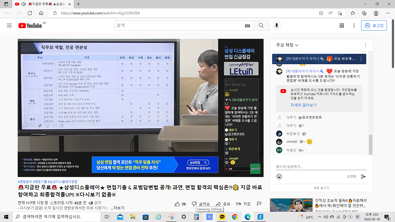 ★무료 라이브 취업특강 - 삼성디스플레이 면접기출 & 모범답변 긴급점검 후기★ + 너무 좋아요 !