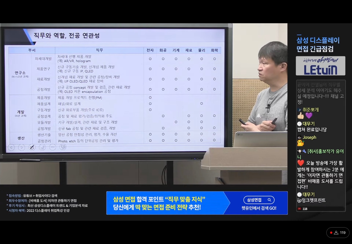 ※ 본 게시글은 2022.05.19 진행된 이광원 선생님의 2022년 하반기 대비 ‘무료 라이브 취업특강 - 삼성디스플레이 면접기출 & 모범답변 긴급점검’ 특강에 대하여 렛유인 카페에 남겨주신 생방송 특강 시청 후기입니다.
