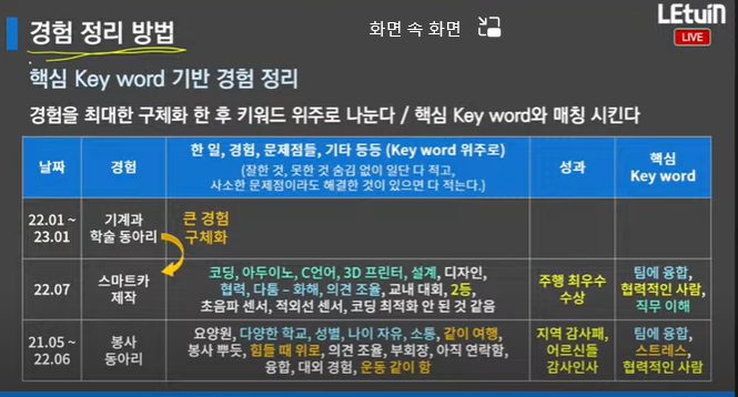 자소서 키워드, 경험 정리 방법, 합격 자소서 예시, Q&A순으로 진행되었습니다. 자소서를 작성하는 방법과 취업을 준비하고 있는 사람에게 도움이 될 수 있는 여러 정보를 제공해주셨습니다. Q&A시간에 최대한 많은 질문을 받아주셔서 궁금했던 점이나 헷갈렸던 점을 알 수 있었습니다. 들었던 정보를 잘 활용하여 자소서를 작성할 수 있을 것 같습니다.