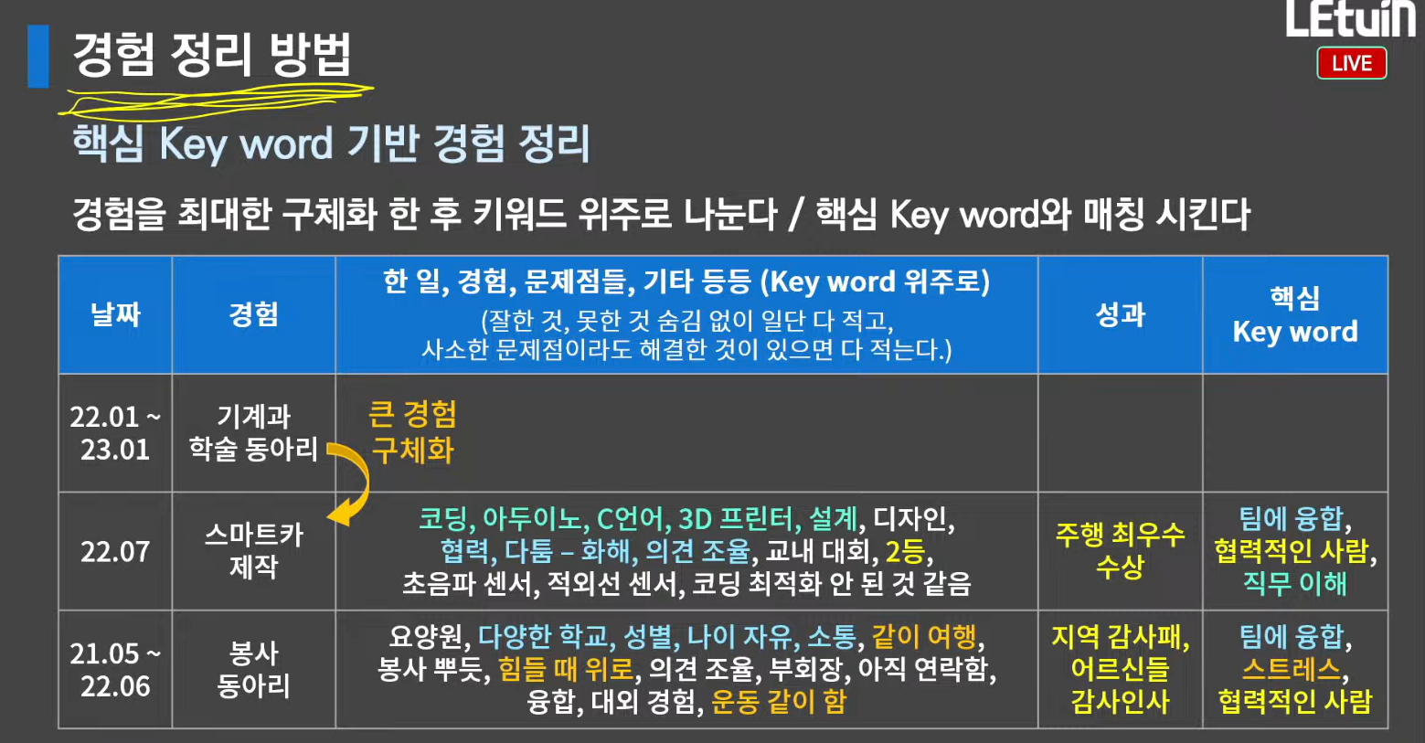 현재 4학년이 되고 처음 취업 준비를 하면서 익숙치 않은 자소서 부분에서 많이 막막한 부분이 있었습니다. 그때 주변에서 렛유인 강의에 대해 알려주었고, 마침 자소서 특강 중 눈여겨 보고있던 기업인 현대자동차를 준비해주셔서 처음 들어봤습니다. 자소서의 기본 방향, 핵심 키워드 등 이번 강의를 통해 얻은 내용을 바탕으로 큰 나무를 세우고, 저만의 경험과 인사이트로 잎사귀를 피워 한 그루의 나무를 만들자는 마음으로 저만의 자소서를 정리해보고자 생각했습니다.