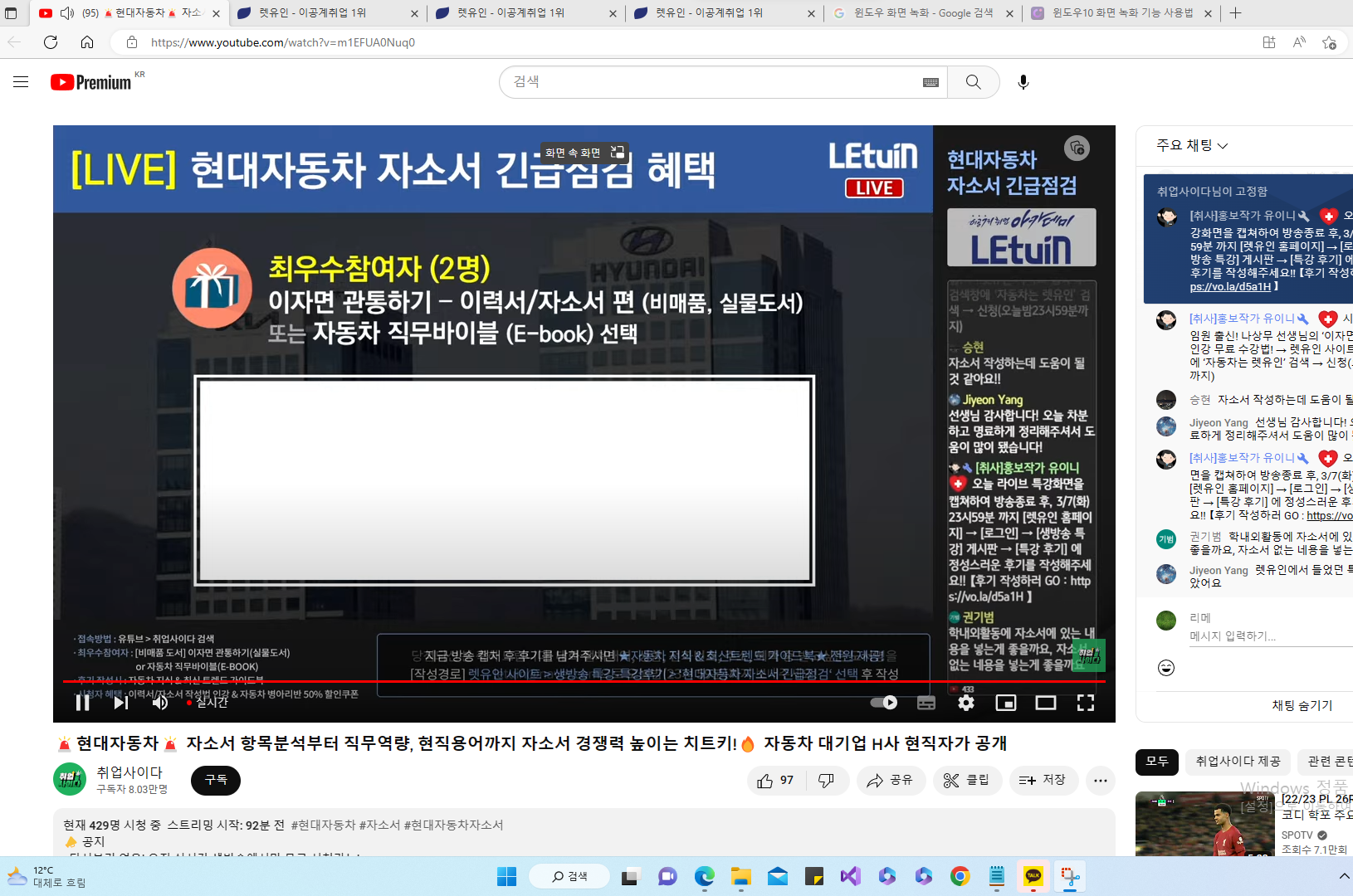 -강의 요약 정리 1. 자소서와 면접은 연결되어 있다. 최선을 다해 쓰고 결과는 겸허히 받아들이자. 2. 경험을 키워드로 정리하고, 하나의 문항에 2개의 경험은 들어가게 하도록 노력하자. 3. 경험을 나열하는 것에 그치는 것이 아니라, 이를 통해 업그레이드 된 점과 이를 바탕으로 형성된 '나만의 인사이트'를 설명하고 직무에 적응 및 포부를 작성하는 것으로 마무리하자. - 강의 느낀점 평소 글쓰기 실력이 부족하다고 느꼈었는데 오늘 특강을 통해 자소서를 어떠한 방향으로 작성해야 할 지 감이 잡힌 것 같습니다. 감사합니다.