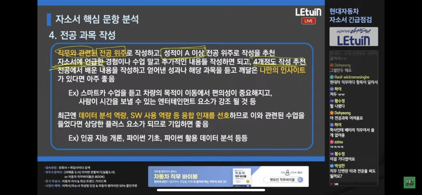 1. 2. 수업내용 요약 정리 경험 정리 방법에 대해 어떠한 항목으로 작성해야 할지 알게되었습니다. 직무에서 요구하는 핵심 키워드에 대한 여러 항목들을 알 수 있었습니다. 자소서 작성 시 예시가 되는 템플릿을 본 뒤 자소서 작성이 보다 수월할 것 같습니다. 3. 특강 수강 후기 세세한 강의와 친절한 답변까지 어느 하나 빼놓을 수 없었던 유익한 강의였던 것 같습니다. 감사합니다.