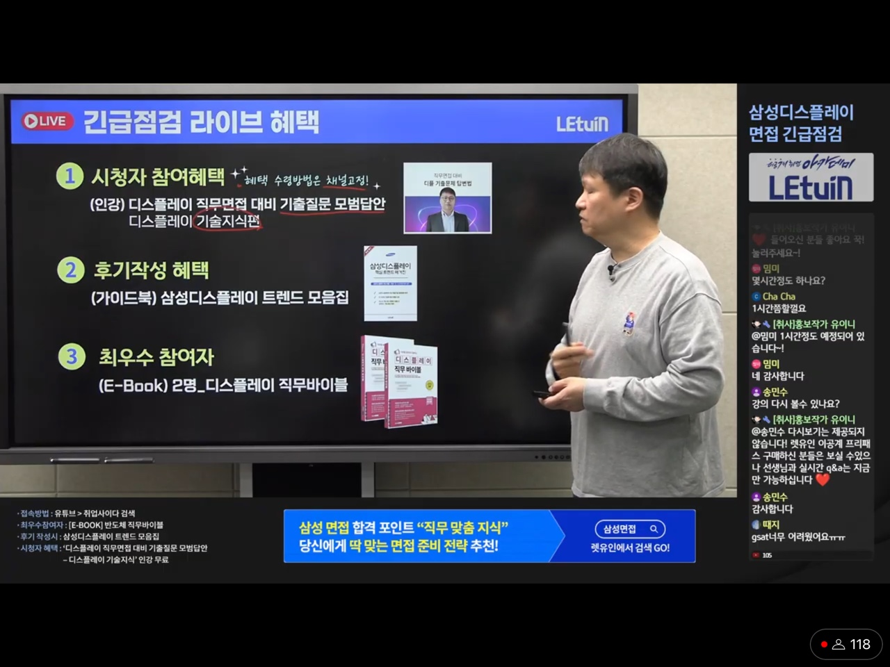 강의 내용 및 느낀점 삼성 디스플레이 면접 과정에 대한 자세한 내용과 각 직무 및 과 별로 어떻게 면접을 준비해야 되는지, 면접 기출 문제를 중심으로 알려주셨습니다. 덕분에 막막한 면접 준비에 가닥이 잡혔습니다. 무료로 좋은 강의 해 주셔서 감사합니다!!