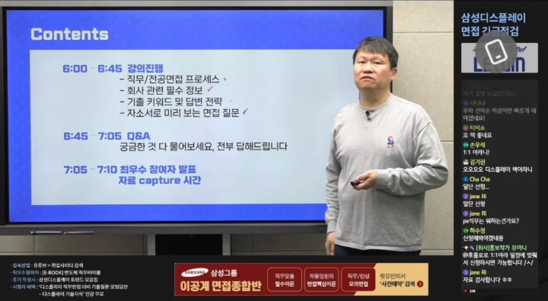 2023 상반기 삼성디스플레이 직무 면접 긴급 점검 생방송 후기