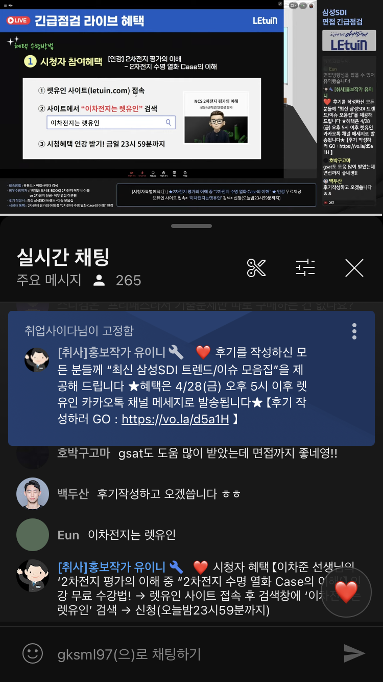 렛유인 덕분에 면접 준비의 틀을 잡아 나갈 수 있을 것 같습니다. 도움되는 라이브 감사합니다!