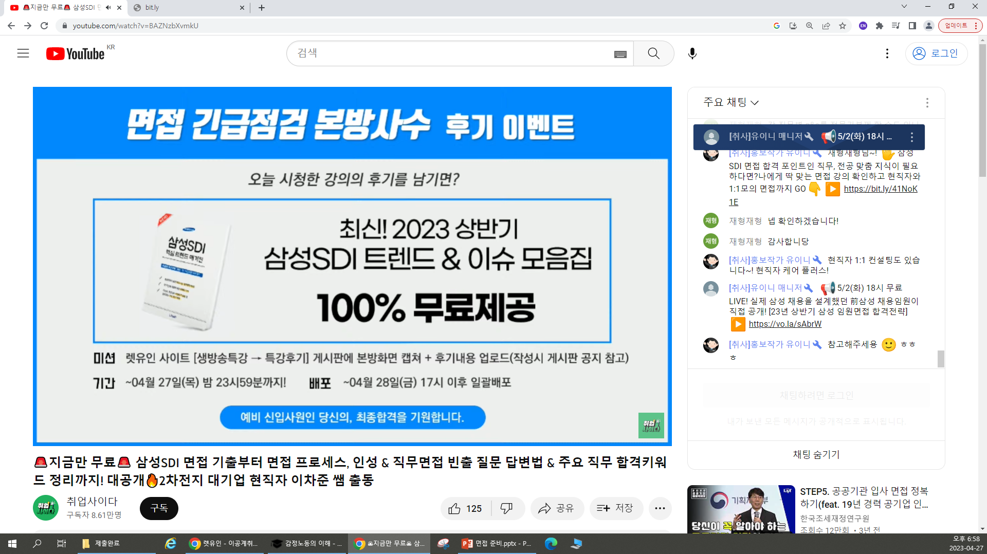 1. 2. 삼성SDI 면접 관련해서 직무 별 공부해야 할 전공 지식에 대한 키워드, 깊이 등을 설명해주셨습니다. 3. 어떤 내용을 어떻게 공부해야 할지 막막했는데 도움이 된 것 같습니다 :-) 면접이라 임원면접이 먼저 걱정이 되었는데, 전공 부분을 꾸준히 공부해 두어야 할 것 같습니다!