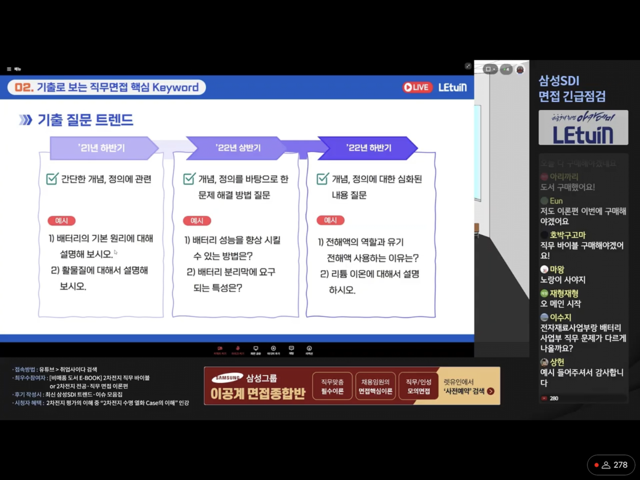 2.강의내용 - 21 22 면접 기출 면접시 질문 내용이 점점 심화되고 있어 철저한 면접 준비가 필요. 제가 많이 부족하다는 것을 느끼고 준비를 철저히 해야겠다고 생각했습니다. 3. 렛유인 강의 및 책 결제해서 들어야 겠습니다. 전문 적인 지식이 부족했는데 강의를 통해 바르게 습득해야 겠습니다.