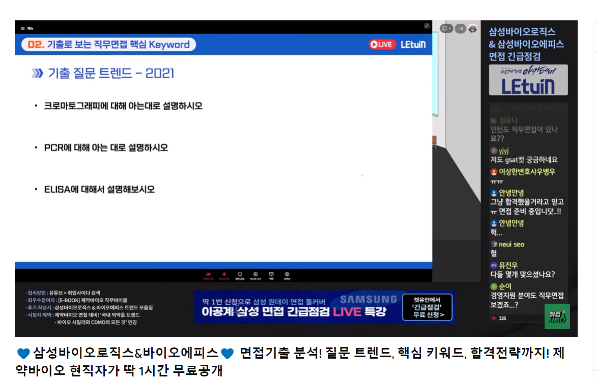 직무면접과 전체적인 흐름에 대해 알 수 있었습니다. 다만 바이오에피스와 로직스에 대한 구분이 좀 모호하게 설명해주셔서 조금 아쉬웠어요