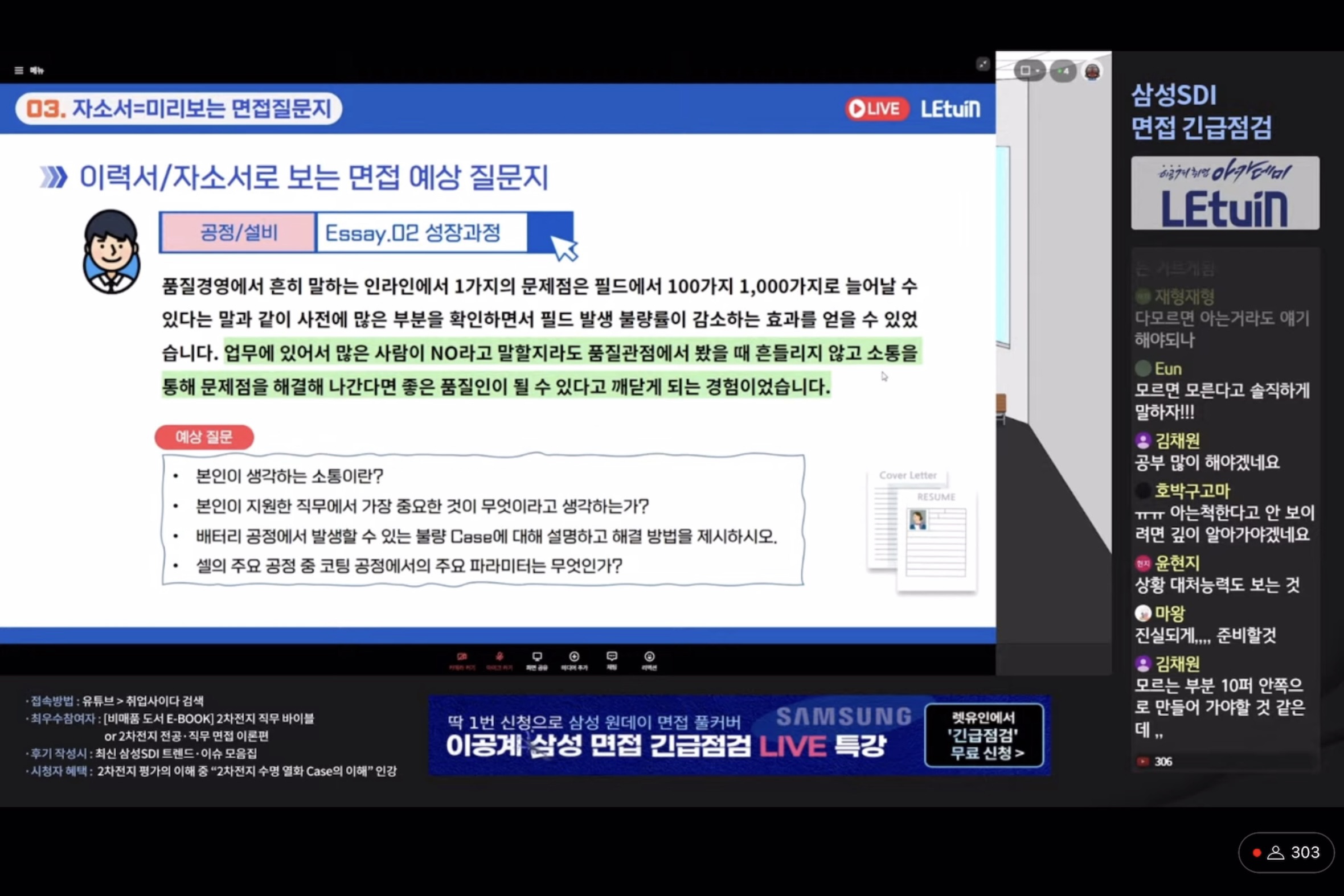 라이브 도움 많이 됐습니다! 유익한 내용들 가르쳐주셔서 감사합니다. 면접 준비에 큰 도움이 됐습니다
