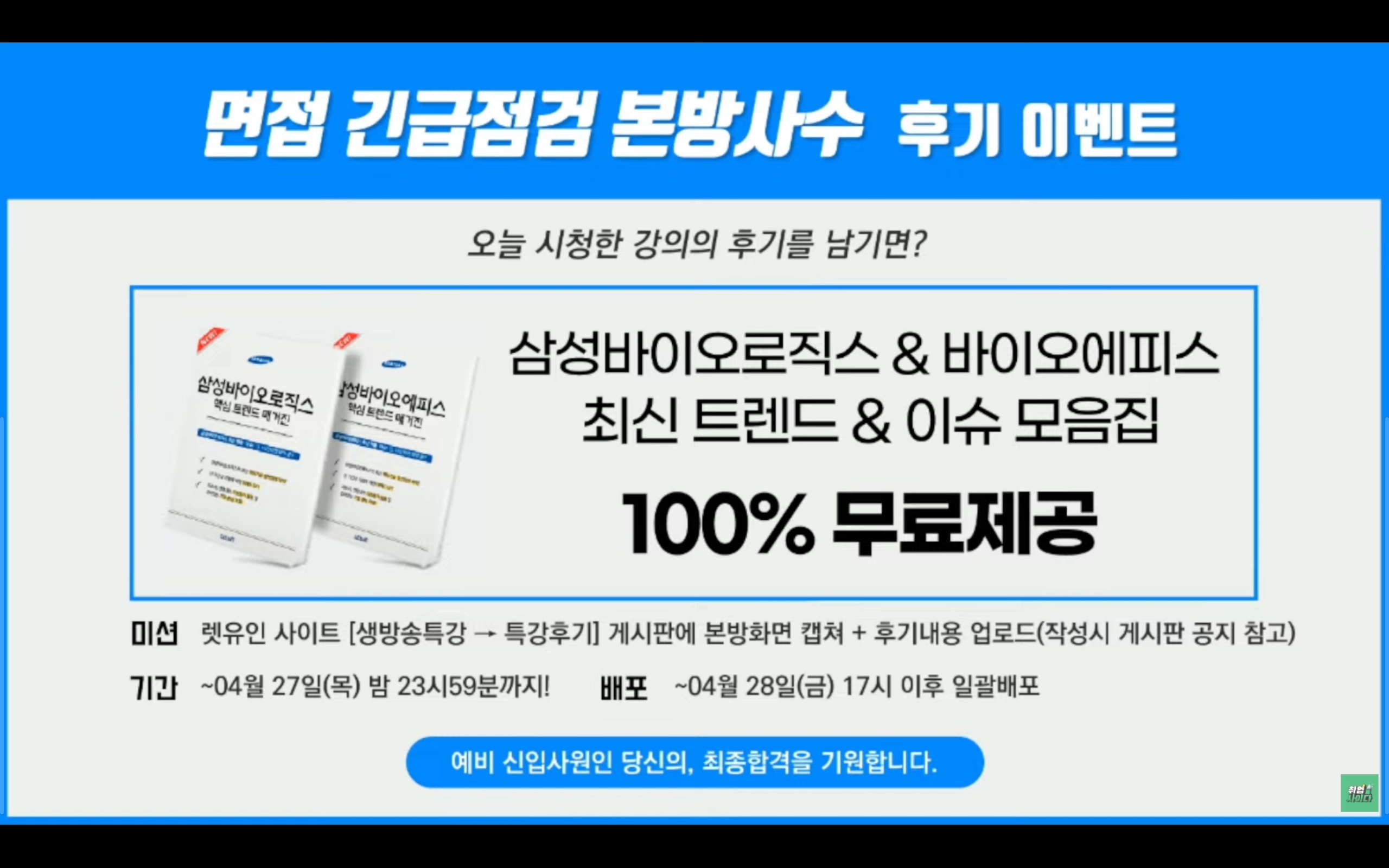 2023 상반기 삼성 바이오 직무면접 긴급점검 시청 후기