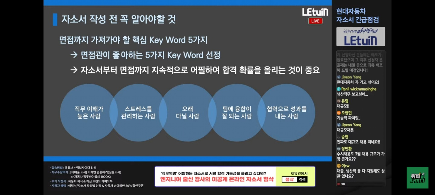 핵심만 담은 생방송 자소서 특강 감사합니다.