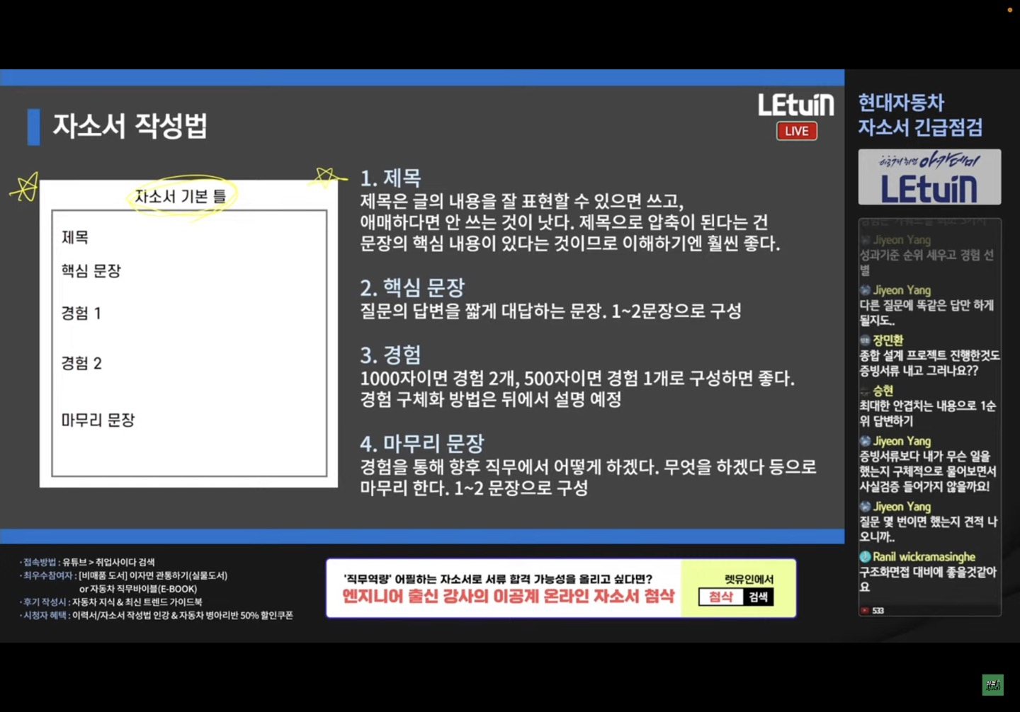 현업자분이 직접 자소서 작성 요령들에 대해 알려주셔서 유익했습니다!!!