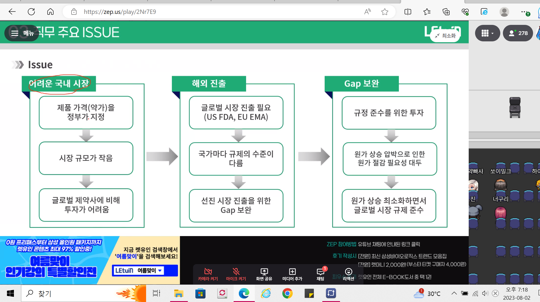 오직페 페스티벌 5가지 산업 분야 중 현재 제가 가장 취업 1순위로 삼고 있는 제약 바이오 분야의 다양한 직무자들을 한자리에서 만날 수 있는 좋은 경험이었습니다. 주로 직무 소개 , 필요역량 , 산업 이슈에 대해 설명해주셨습니다.