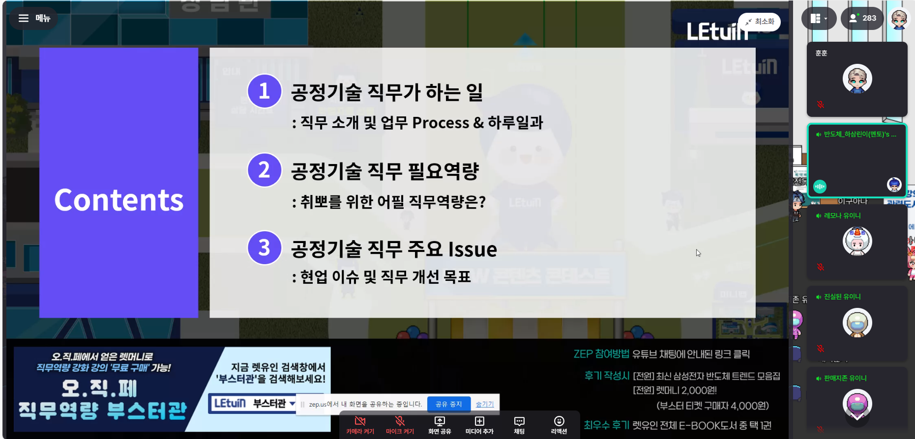 공정기술에 대해 직무가 하는 일, 직무 필요역량, 주요 이슈에 대해 상세히 알려주셨습니다.