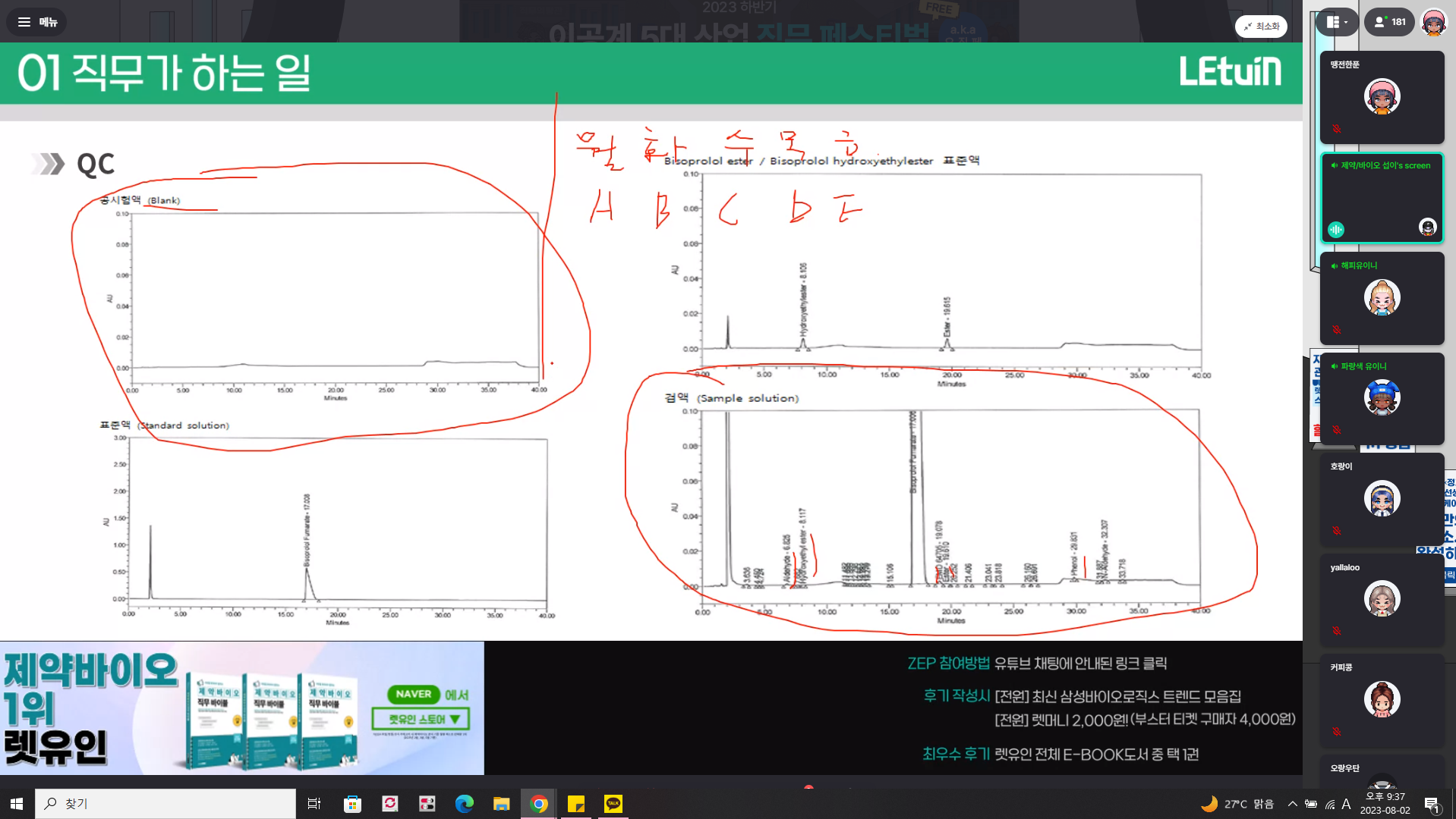 제약/바이오 QC/QA 직무를 현직자가 평상시 하는 일에 대해서 특강을 해주었고 그 외 QC/QA가 되려면 어떤 공부를 하고 어떻게 준비해야 하는지를 알차게 설명해주셨습니다. :}