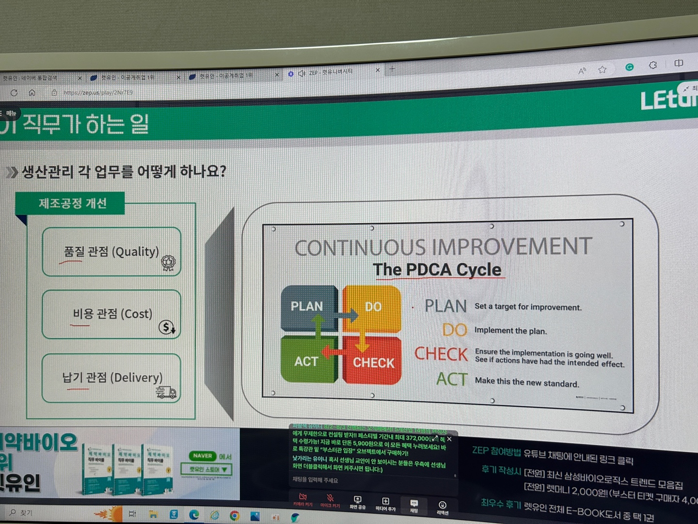 수업 시작 시간도 잘 맞춰주시고 질의응답도 해주셔서 보람차고 직무에 대해서 이해도 잘 할 수 있었던 시간이었습니다. QA/QC 직무에 리더십이 필요하다는 것을 생각치 못했는데 설명해주셔서 좋았습니다.