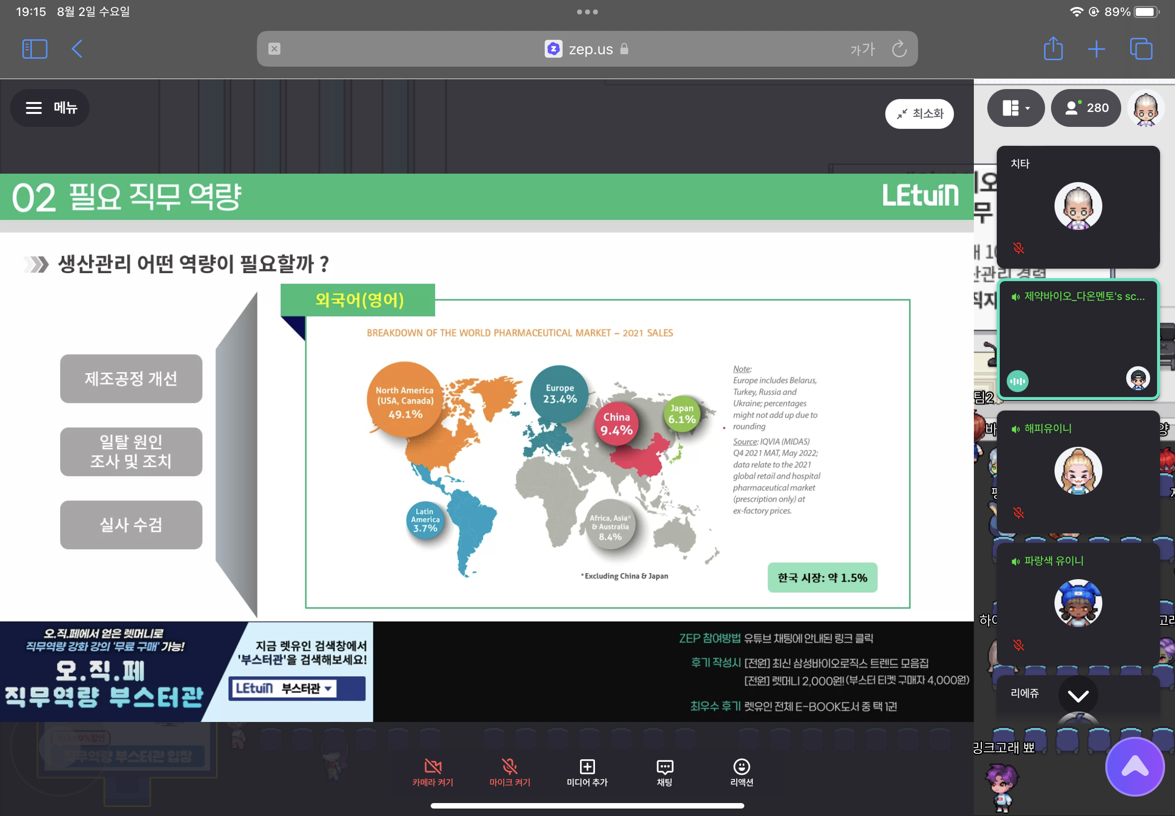 제약 바이오 산업의 직무에 대해 많은 것을 배울 수 있게 되었습니다.