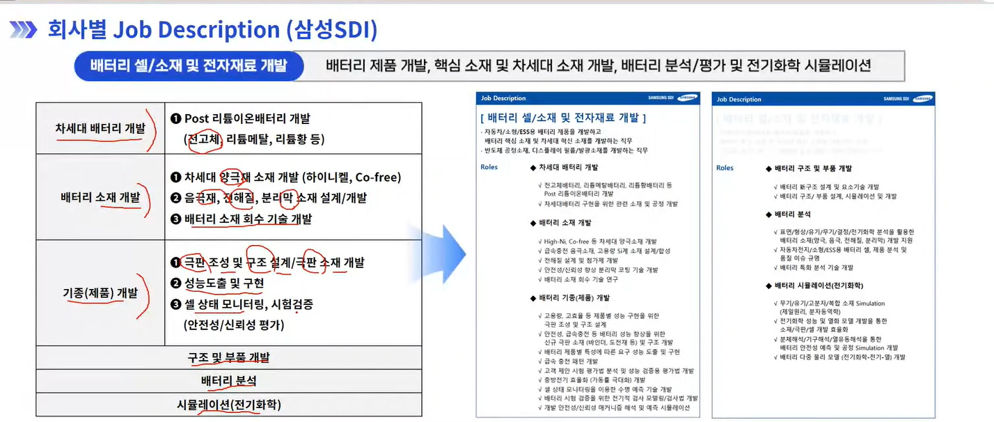 이차전지 셀 개발 직무 내에서도 어떤 직무들이 존재하는지, 각 세부직무에 맞는 전공과 그 역할에 대해 상세히 설명해 주셨습니다. 전반적인 업무진행 프로세스 및 필요 역량에 대해서도 확실히 짚어주셨습니다.