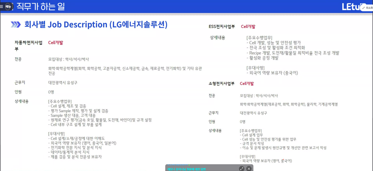 2차전지 강의부터 같은 현직자 분께서 진행해주셔서 일관된 느낌을 받을 수 있어 좋았습니다. 또 SDI 현직자 분이셔서 다른 기업 이야기는 거의 없을 줄 알았는데 그런 부분도 살짝 짚어주셔서 좋았어요