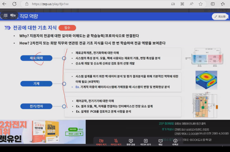 삼성SDI 현직자의 셀소재개발업무에 대해서 잘 배울 수 있었다. 셀소재 직무에 필요한 역량과 준비해야 할 점이 무엇인지 제대로 알 수 있었고 앞으로 무얼 준비해야 할지 알 수 있었다.