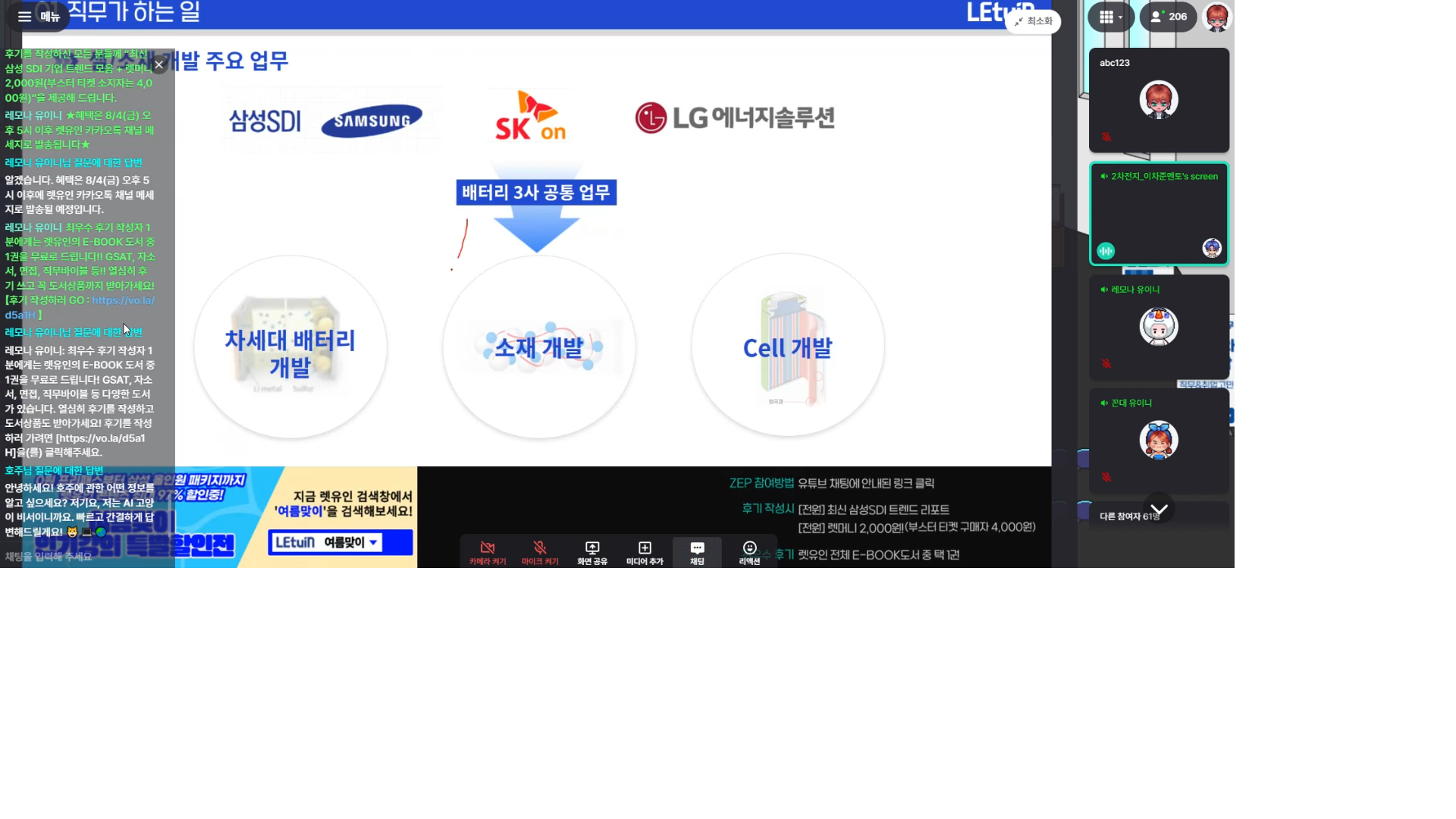 제일 궁금했던 셀 개발 현직자 일과를 상세히 시간별로 정리해주셨다. 최근 면접 기출 질문과 최근 셀 소재개발 트렌드를 알려주셨다. 3. 수강후기