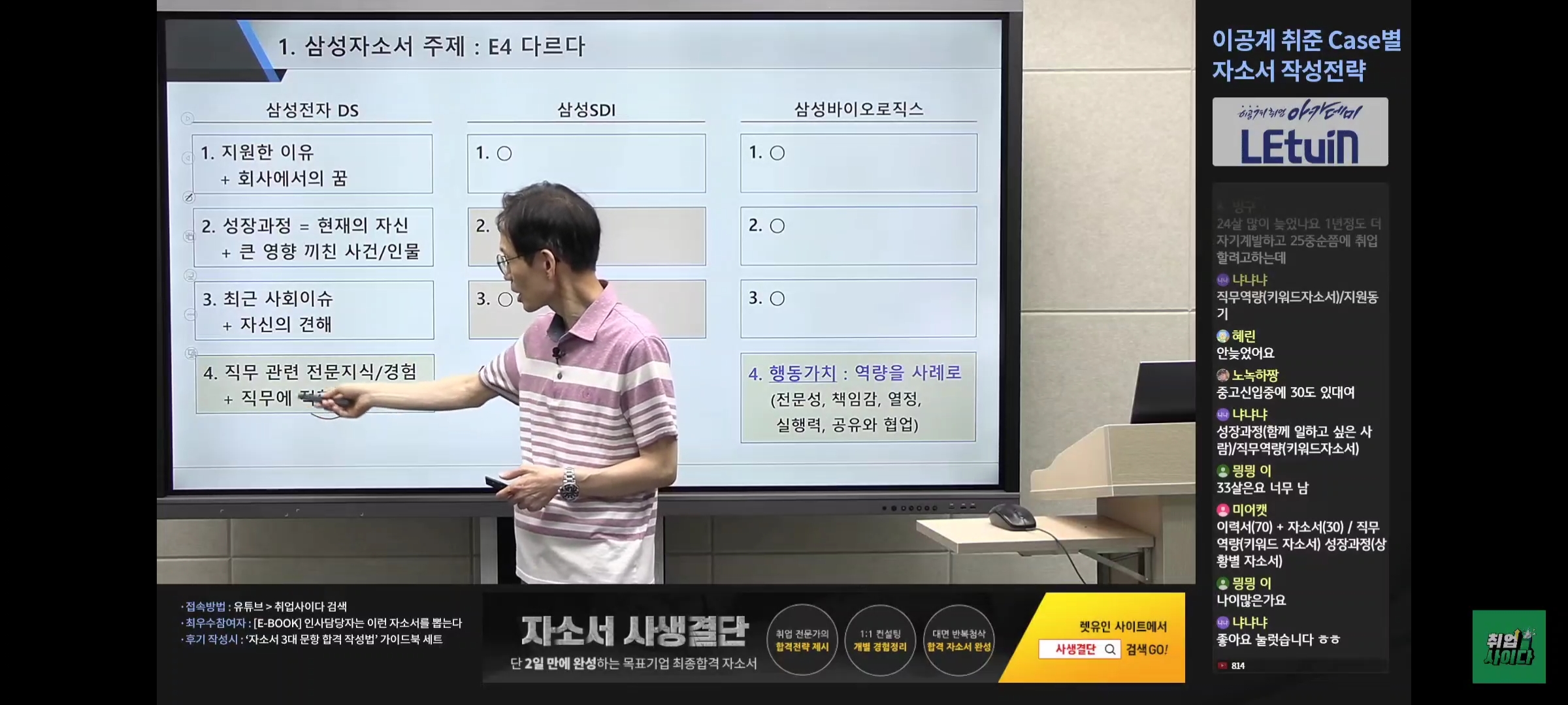 삼성전자 DS부문의 자기소개서 항목들에 대한 분석을 진행해주셨습니다. 또한 각 직무에서 필요한 직무역량에 대해서 알려주시며 이를 자기소개서에 연결지어 예시를 들어 설명해주셨습니다. 합격 자소서를 분석해 주시며 실제로 잘 적용한 사례를 보여주셔서 이해하기 편했습니다.
