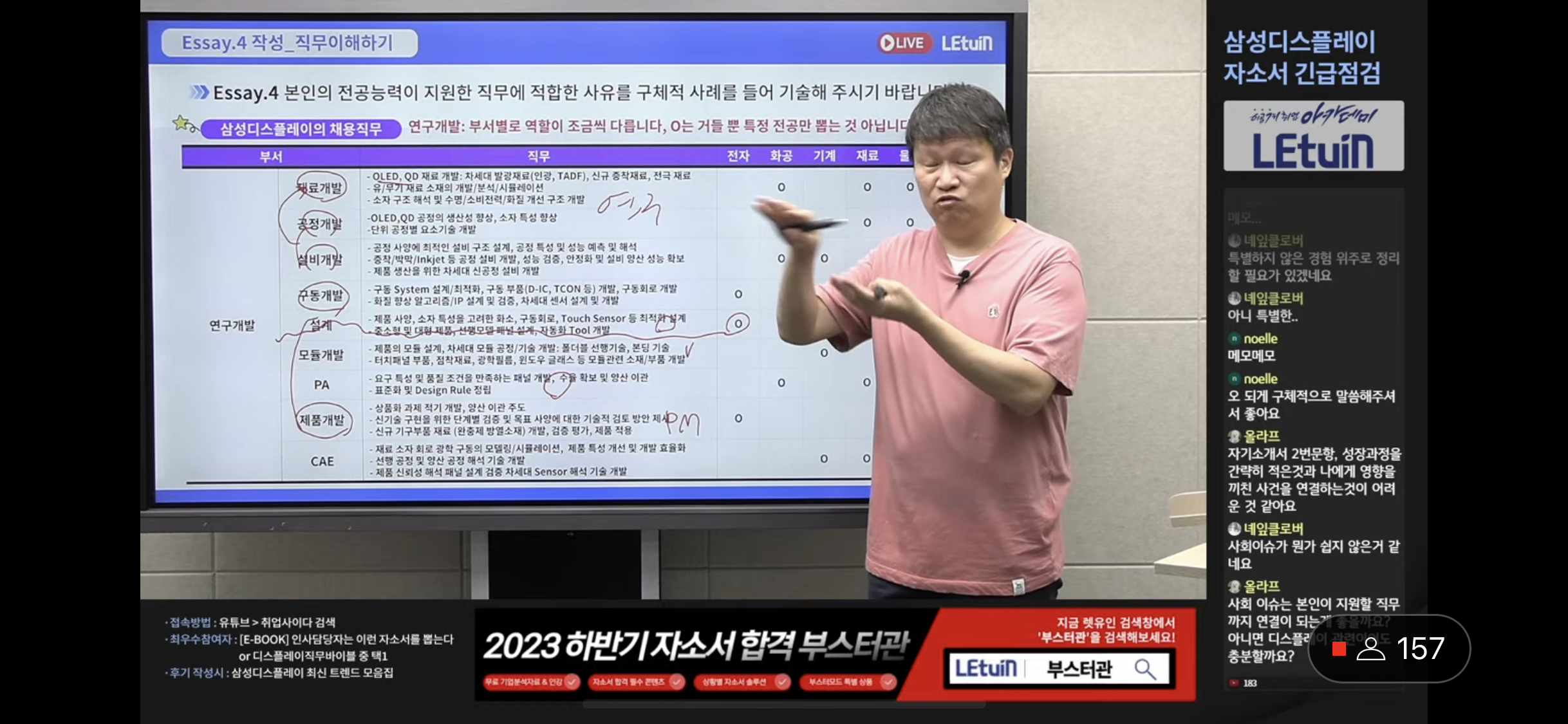 마침 삼성디스플레이와 관련된 일을 하고 있어서 이번에 전자 말고 디스플레이를 지원해야할지 고민이 많았는데 지원 직무에 대한 시야가 확 트이며 확신이 생겼습니다. 듣길 정말 잘한것같습니다.