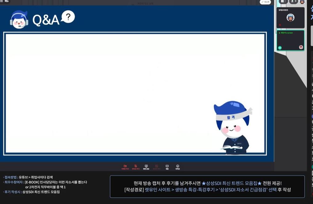 삼성SDI에 지원하는 사람들을 대상으로 배터리의 간략한 개념(셀, 배터리, 팩) 및 자소서를 작성하는 과정에서 어떤 점을 중점으로 작성해야하는지에 대한 분석이 주된 내용이었습니다.