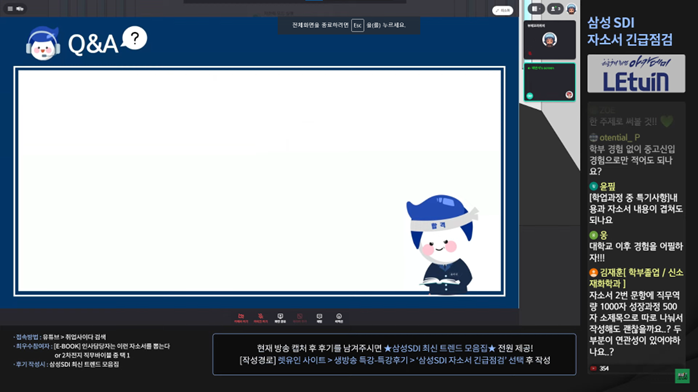 공정개발직무와 공정기술직무에 차이점에 대해서 정확하게 알게 되었고 자기소개서 문항중 2번 문항에 어려움을 겪었는데 성장곡선중 변곡점이 될만한 사건을 중심으로 기술하라고 알려주셔서 많은 도움이 되었습니다.