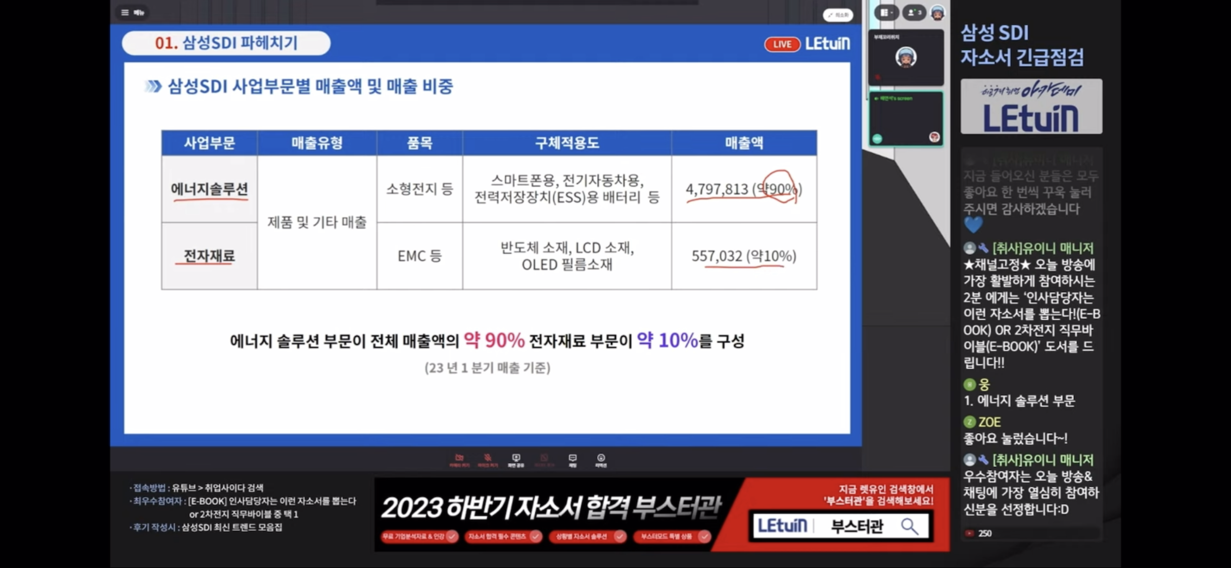정리해주신 내용 바탕으로 자소서 다듬어가겠습니다 항상 이런 유익한 강의 열어주셔서 렛유인 고마워유ㅠㅠ 후배들한테도 추천하고싶네요 생방송 시청 인증 이미지