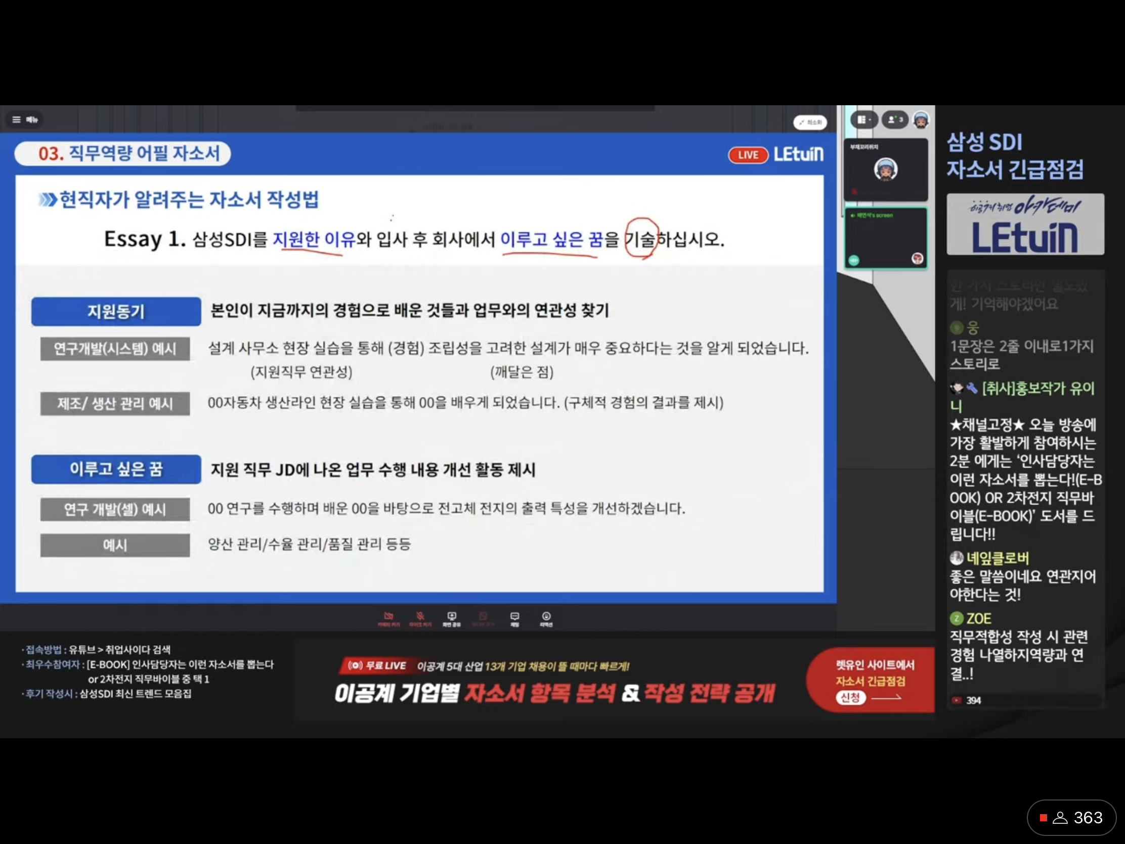 2. 삼성 SDI 직무 설명, 어떤 일을 하는지, 어떤 역량이 필요한지 3. 자기소개서 3문항에 어떤 내용이 꼭 들어가야하는지, 어떻게 적어야하는지 3. 수강후기