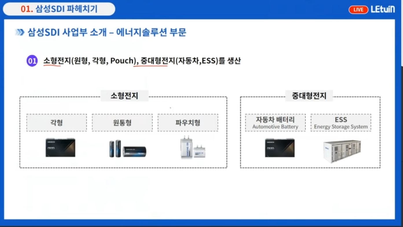 배터리 공정과 개념에 대한 전반을 알 수 있어서 많은 도움이 되었습니다. 또한 배터리 산업을 알 수 있어서 좋았습니다. 에너지솔루션사업부 90%, 전자재료 부문 10% 등 사업부 규모에 대해 알 수 있어서 사업부 선택에 도움이 됨