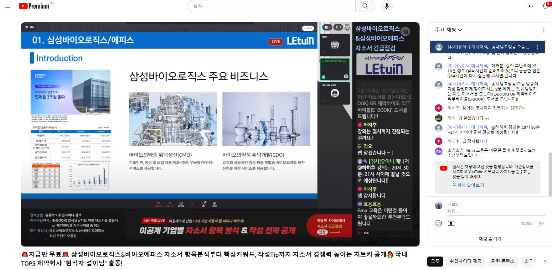 삼성 바이오로직스/에피스에 대한 간단한 차이점 및 기업분석과 자소서 항목에 대해서 소개해주셨습니다.