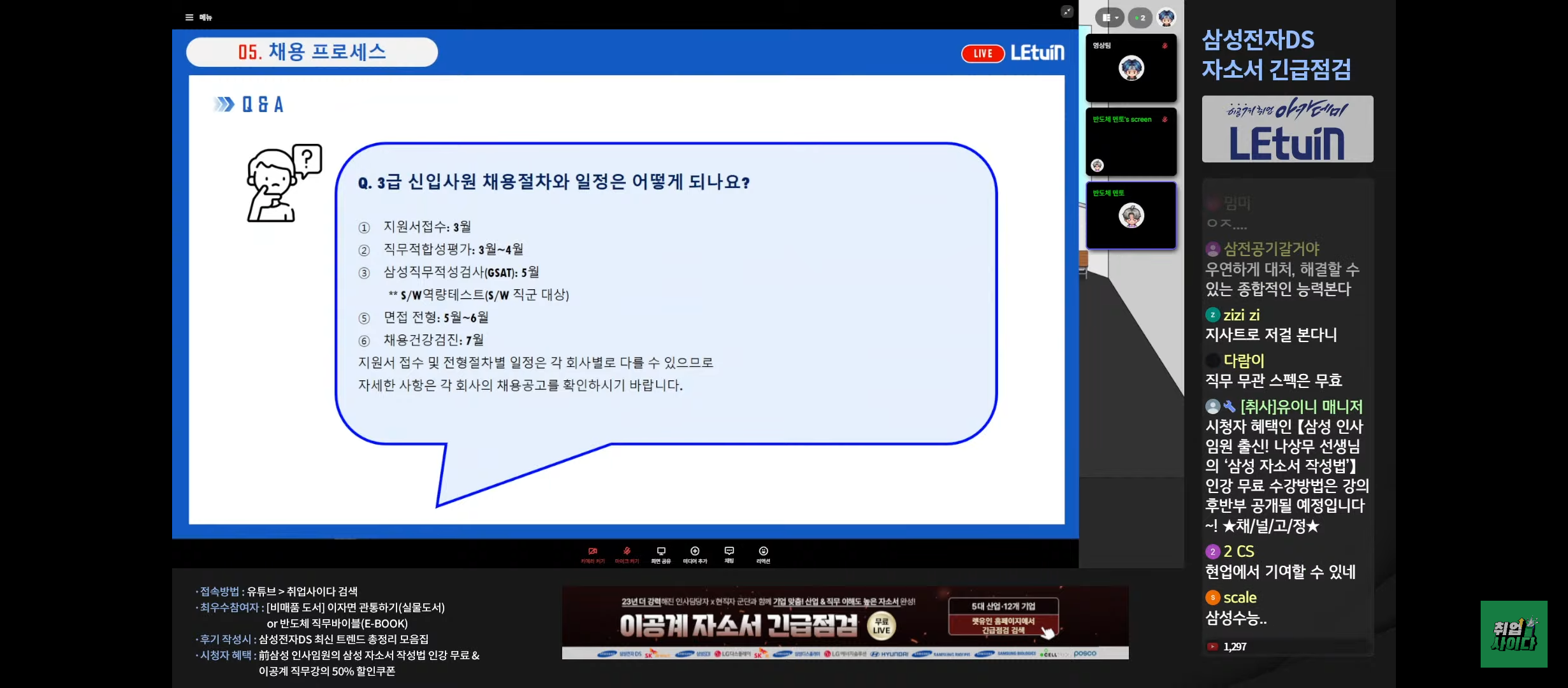 1. 2. 1. 자소서는 면접까지 연결 시켜서 작성해야한다. 2. 가독성을 높이기 위해 두괄식 표현 등을 이용하여 작성한다. 3. 내용은 항상 직무와 연관지어서 작성하여야한다. - 경험중 직무와 관련성이 가장 높은 것을 작성하고 활용해야한다. 3. 각 essay를 작성할 때 핵심 key word가 무엇인지 제시하여주었습니다. 그리고 내용전반에 걸쳐 항상 직무관련성을 염두해두고 작성해야한다는 것과 제시한 키워드로 어떤식으로 작성할 수 있는지 간략한 예시를 제시해 주셨습니다. 그리고 현직자로서 직무와 관련된 질문에 실무와 연관지어 자세한 설명을 제시해 주신 면에서 좋았습니다.