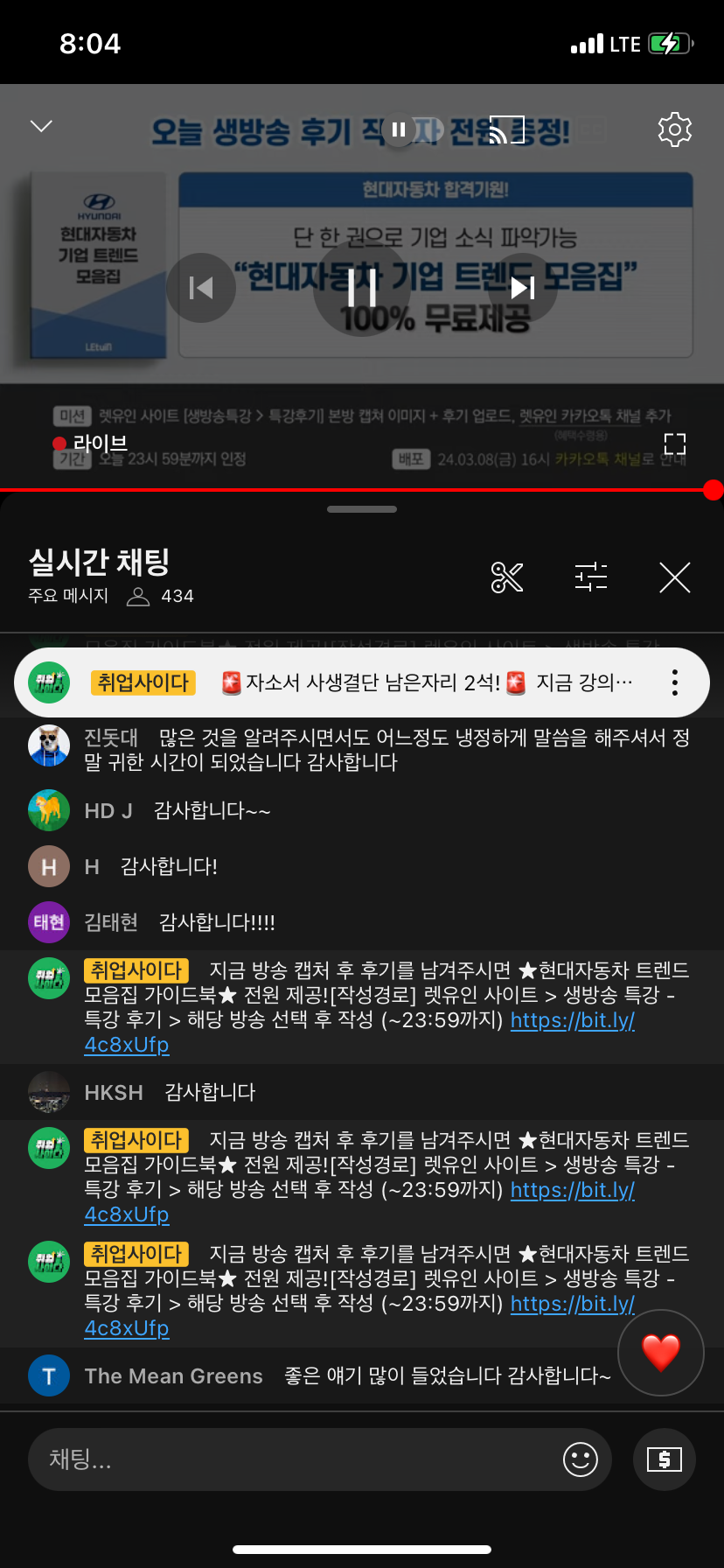 자동차 산업에 대한 이해와 방향을 배웠습니다. 또한, 현대자동차 직군 별 자소서 항목에 대한 자세한 분석과 작성 방향에 대해 알려주셨고 시청자들의 질문에 진심 어린 조언을 해주셨습니다.
