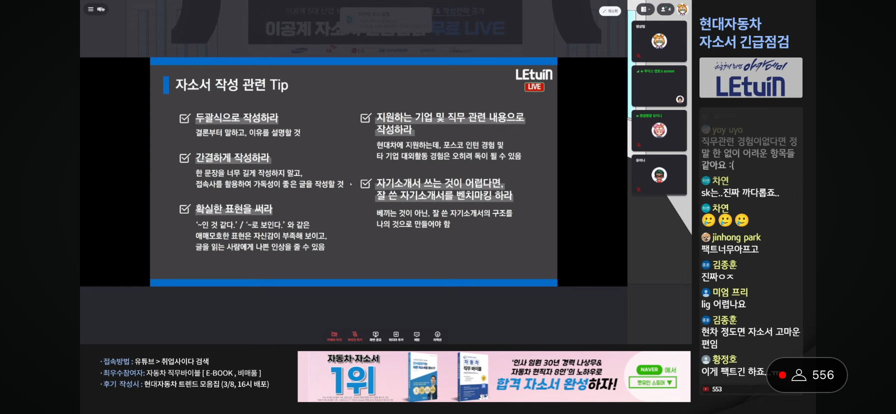 또한 두괄식 및 간결, 확실한 표현, STAR 기법 등 자소서 작성 팁이 많은 도움되었습니다. 생방송 시청 인증 이미지