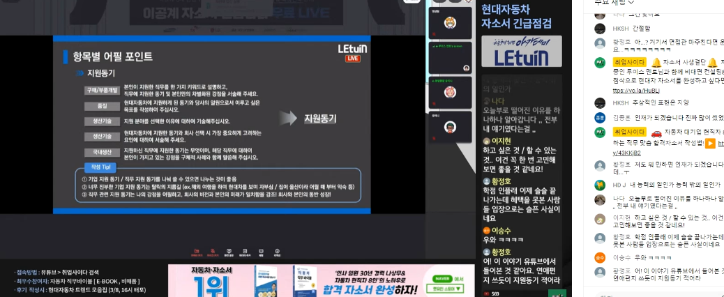 앞에는 현대차와 전체적인 전기차 완성업체 현황 뒤에는 현대차 자소서 항목 분석으로 강의가 이루어졌습니다 3. 수강후기