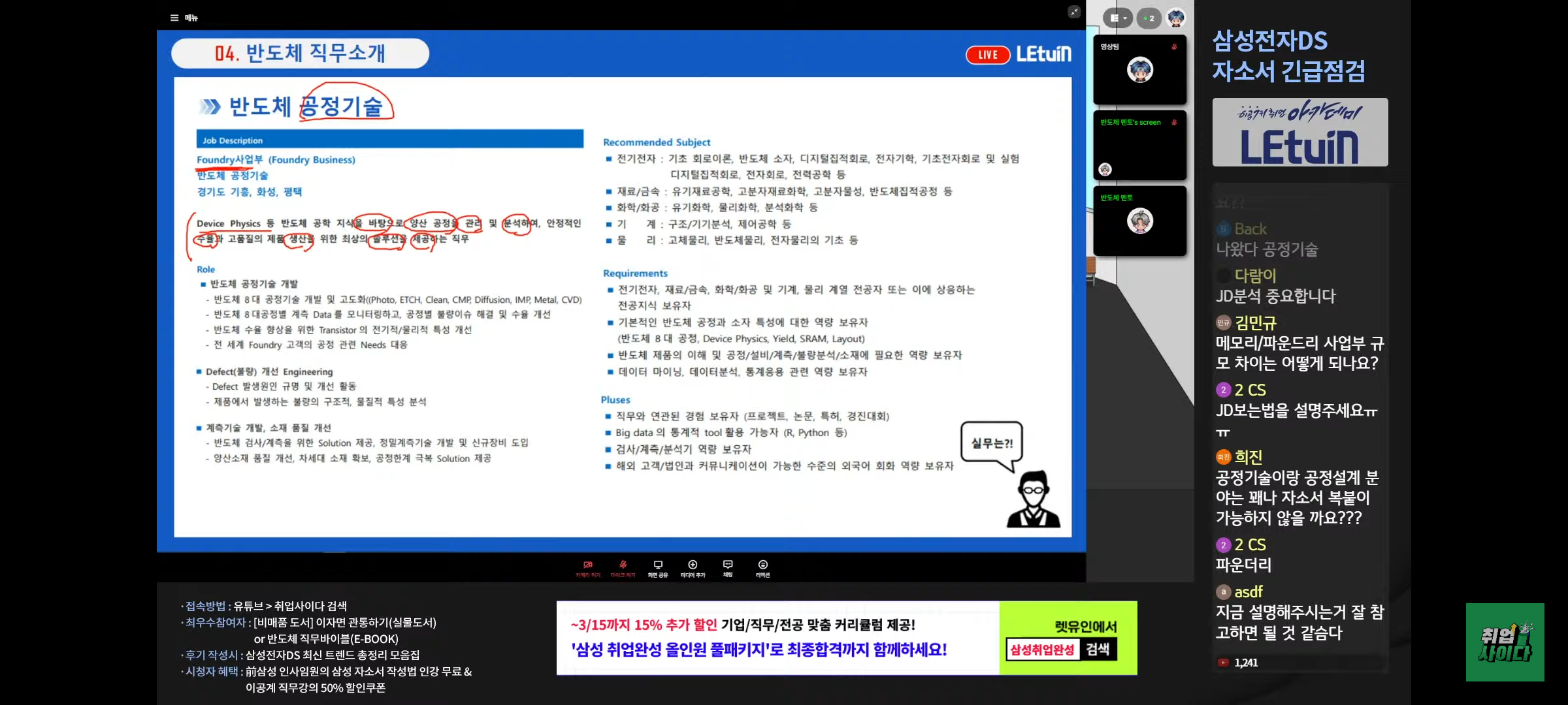 파운드리 공정기술 직무분석을 세세하게 해주셔서 자소서 작성에 많은 도움이 되었습니다.
