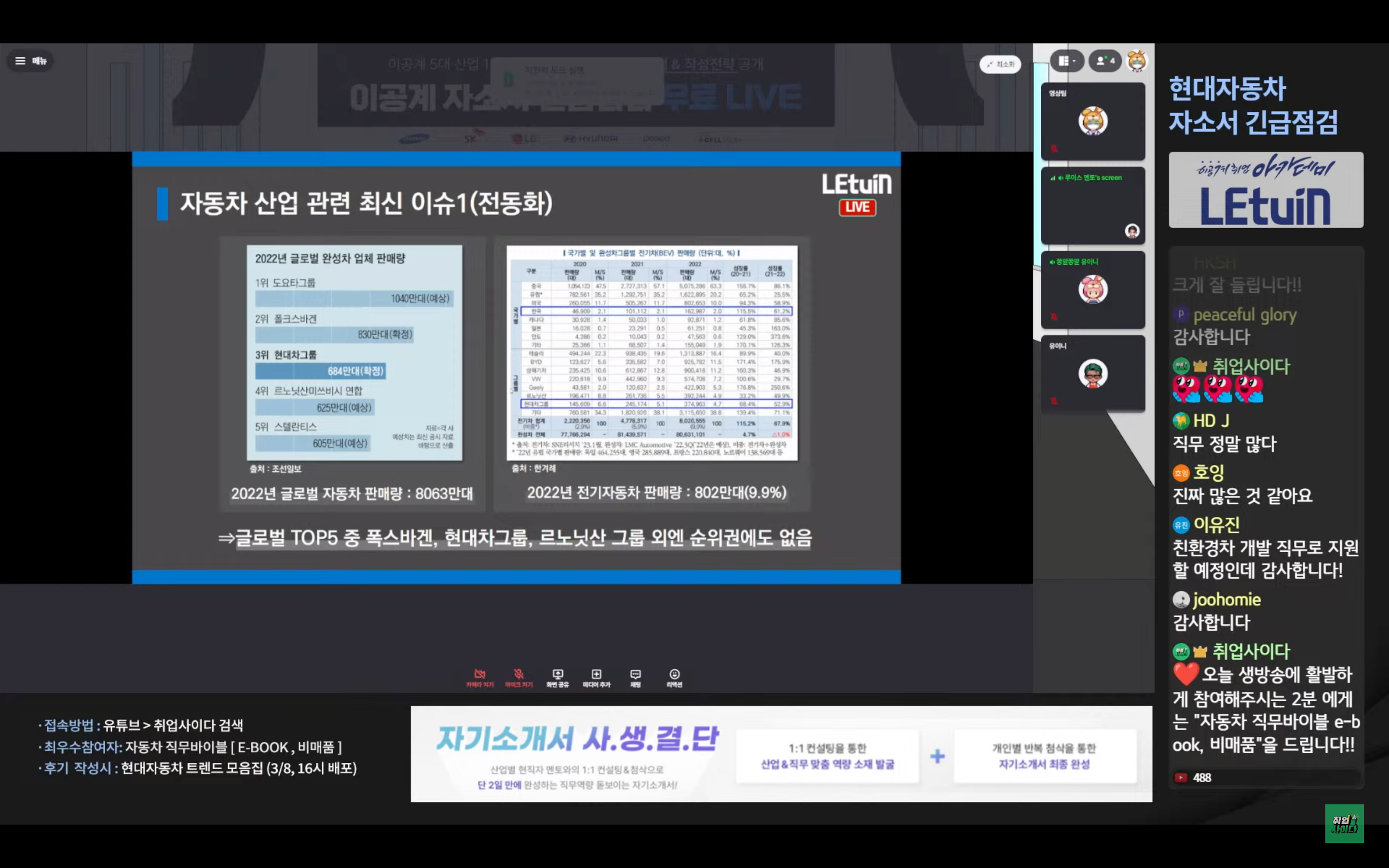 이과 직무를 지원하는 것은 아니지만 전반적인 산업 동향과 분위기를 파악할 수 있어서 자소서를 작성할 때 큰 도움이 될 것 같습니다. 생방송 시청 인증 이미지