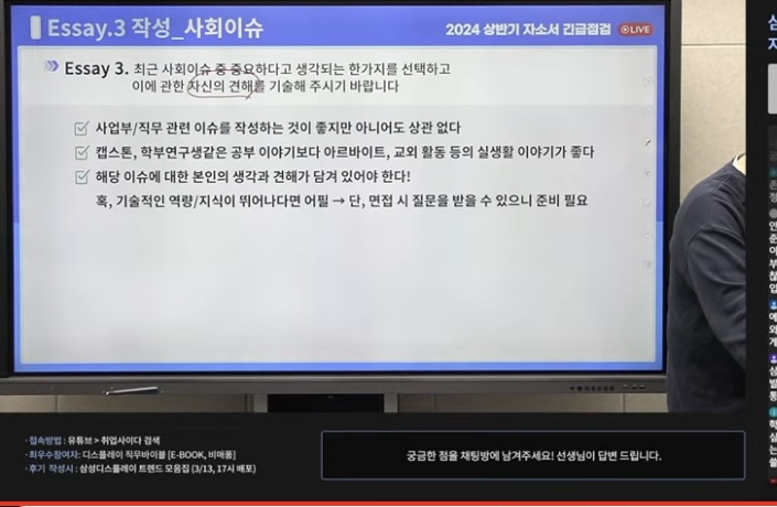 2) 항목별 자소서 작성 내용 문항별 작성해야할 내용과 포인트 ,금칙어, 피해야 할 단어 3) 직무 상세한 분석 4) 삼성디스플레이 최신 이슈 . 3. 수강후기