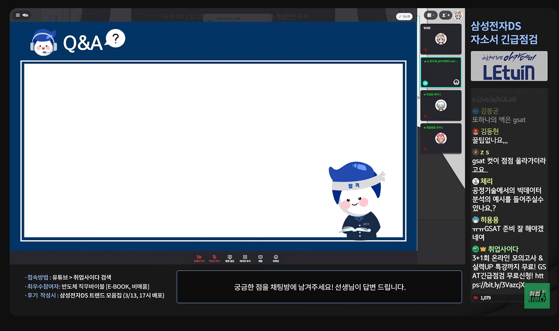 글로벌 인프라 총괄 : 8대 공정 메모리 사업부 : test, 검증 총괄이어도 공정기술, 특정 사업부를 타겟해야 좋음. 공통적인 역량이라도 특정 사업부, 특정 공정, 특정기술을 타겟하기 에 대해서 배울 수 있어서 좋았습니다. 생방송 시청 인증 이미지