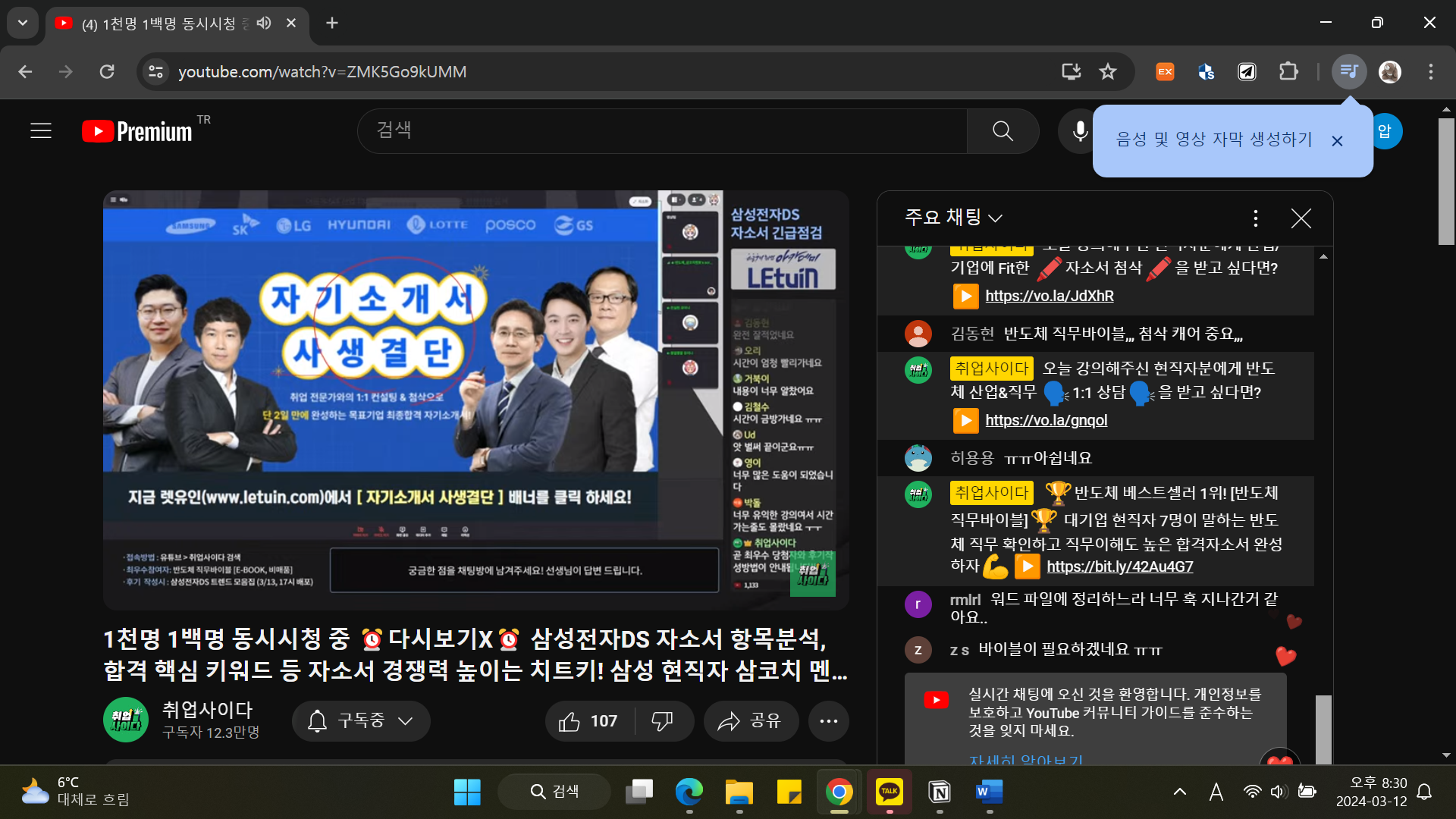 또한 질문 받아주신 점도 좋았습니다. 직무에서 필요한 현업 키워드 좋은 정보 감사합니다. 2번항목 작성하는 꿀팁도 감사합니다 생방송 시청 인증 이미지