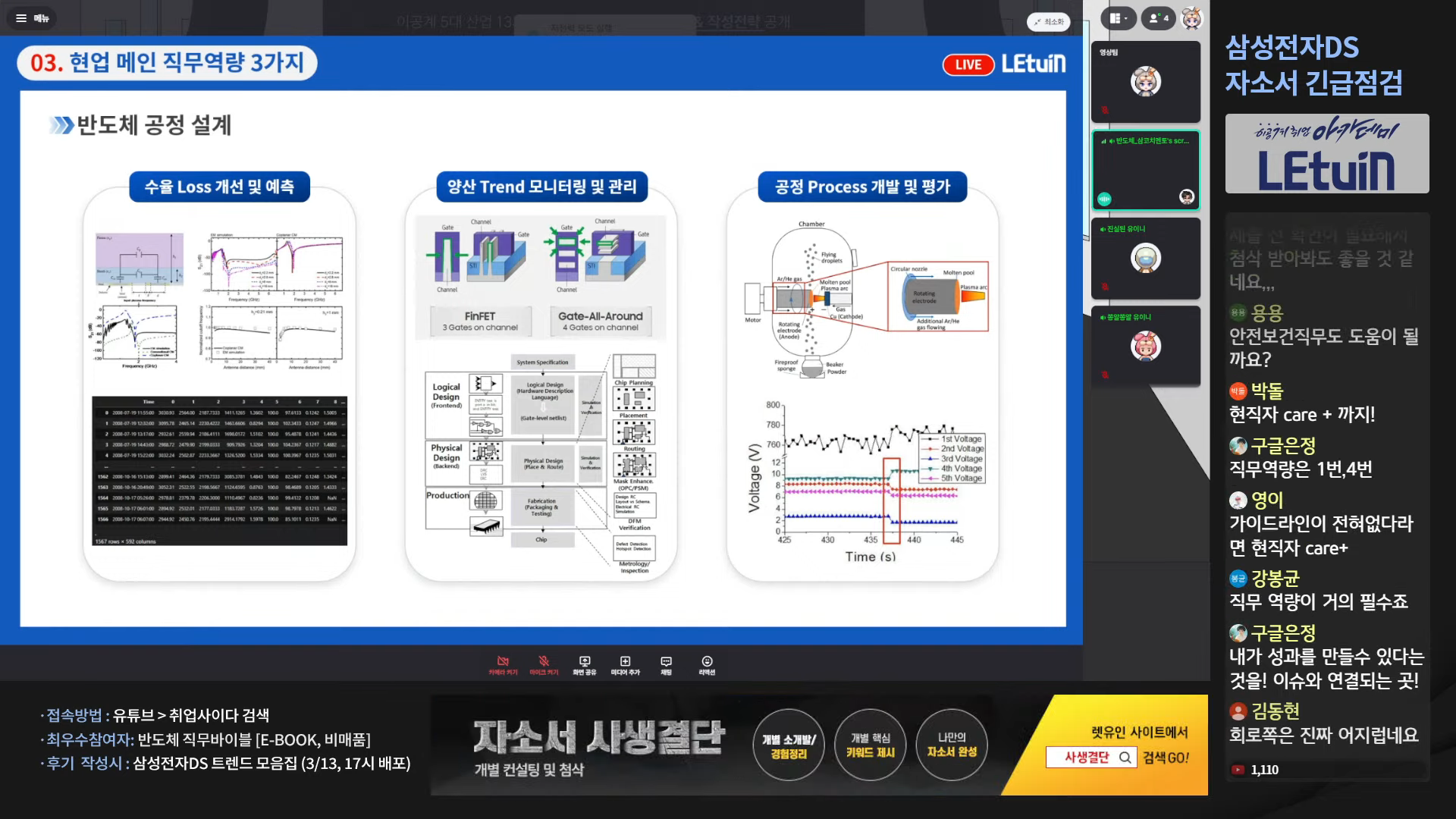 공정설계 메인 직무 역량: 수율 Loss 개선 및 예측, 양산 Trend 모니터링 및 관리,공정 Process 개발 및 평가 3. 수강후기