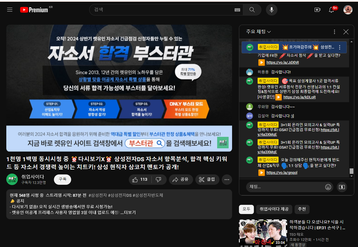 렛유인 생방송 취업특강
