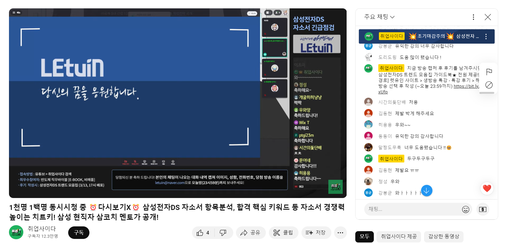 렛유인 생방송 취업특강