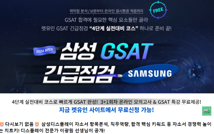 자기소개서 특강 덕분에 막막한 삼성 자기소개서에 접근하는 데 도움을 많이 얻은 것 같습니다. 저도 이번에 삼성에 입사해서 합격 자소서를 공유해서 남들에게 도움이 되고 싶습니다!