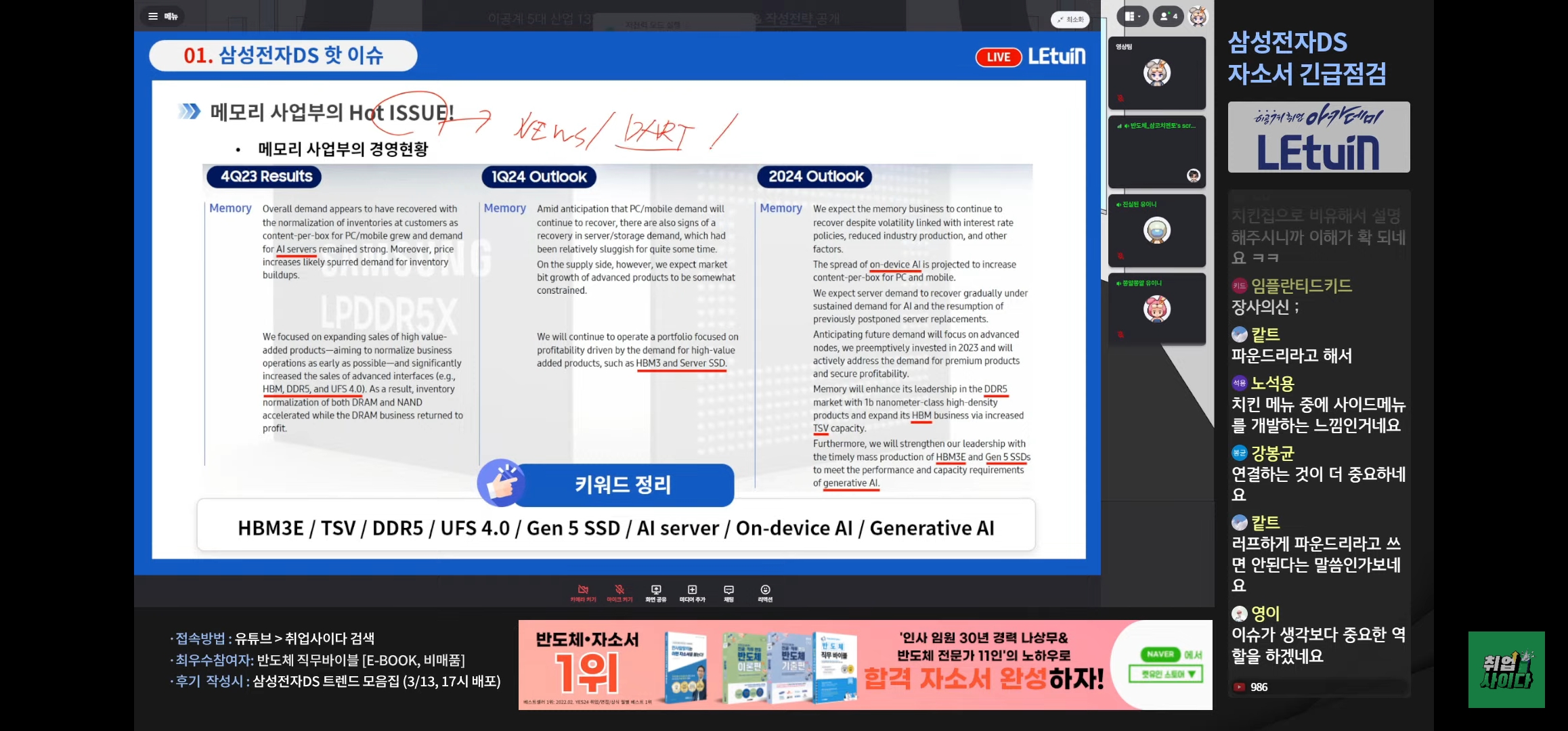 생방송 시청 후기! 삼성전자 DS 이슈정리 끝! 자소서 끝!
