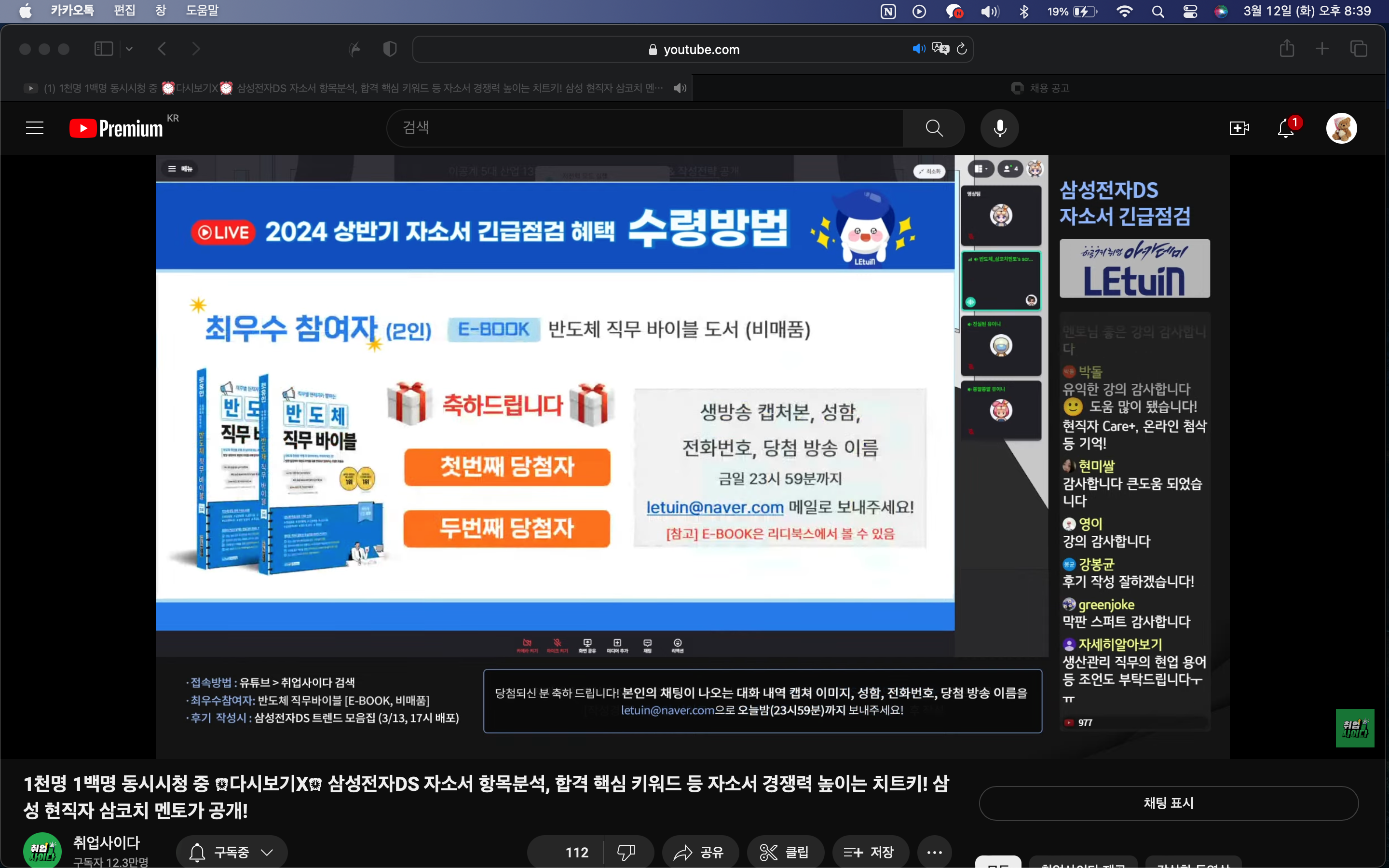 렛유인 생방송 취업특강