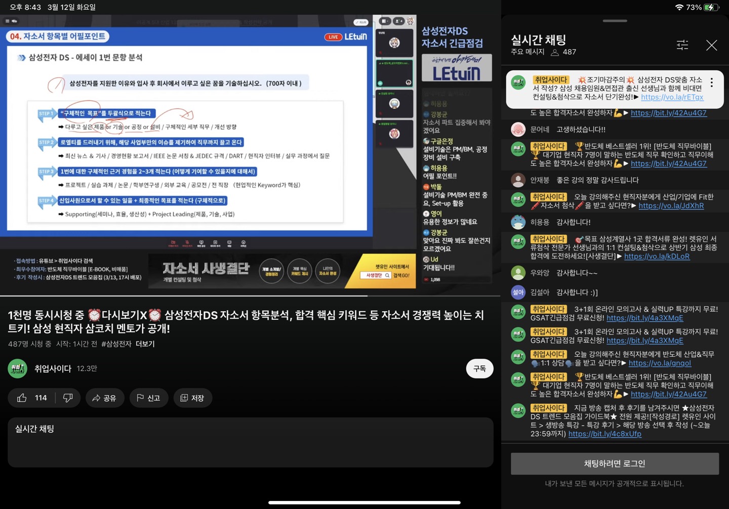 렛유인 생방송 취업특강