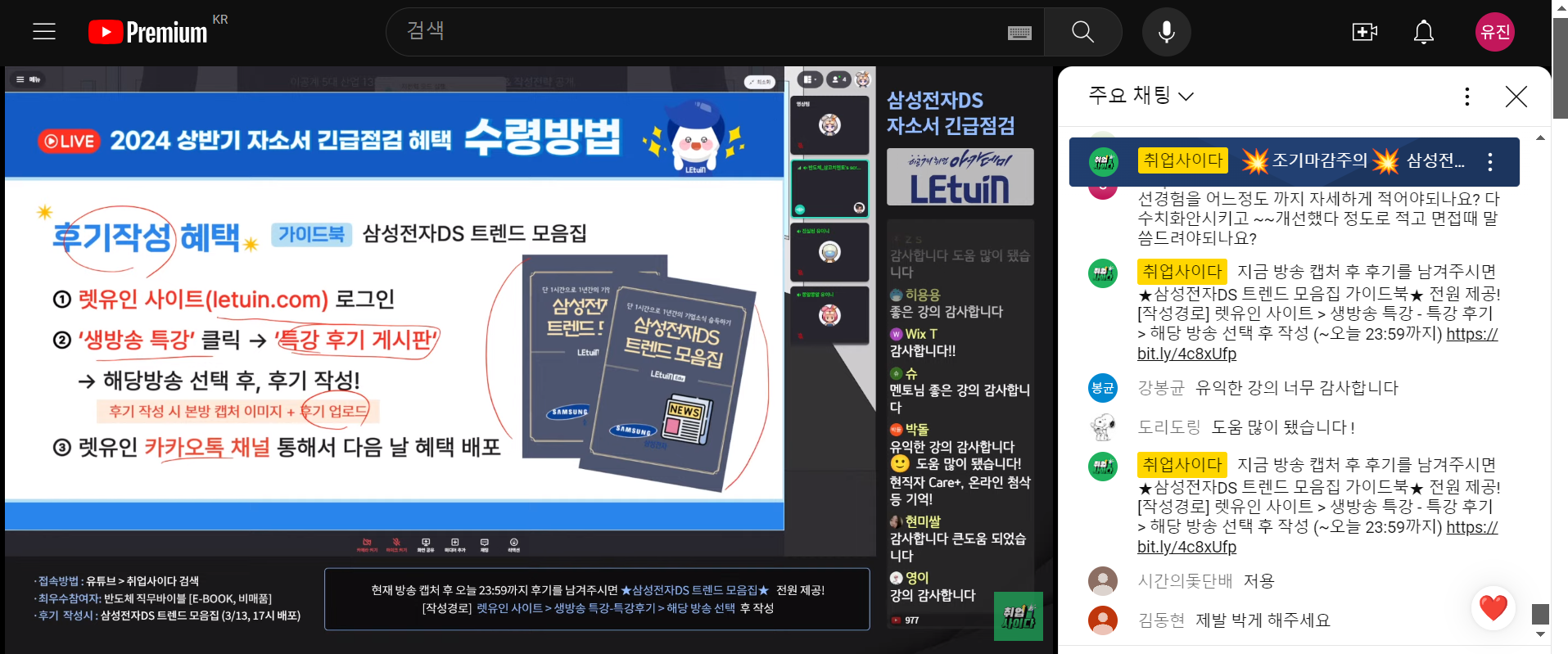 렛유인 생방송 취업특강